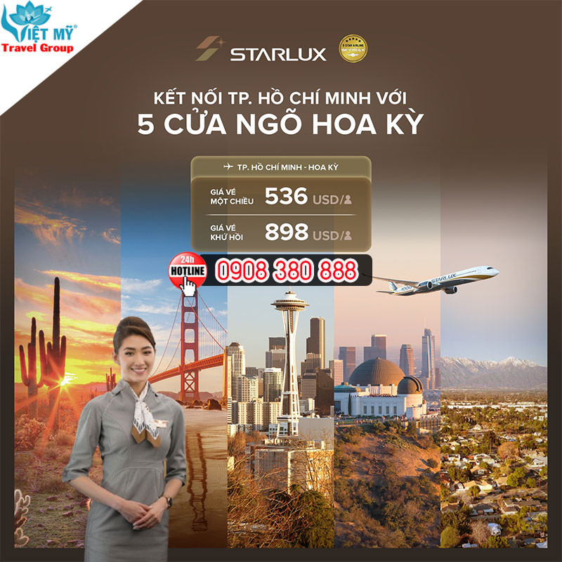 Vé STARLUX đi Mỹ từ TP.HCM giá tốt chỉ từ 536 USD