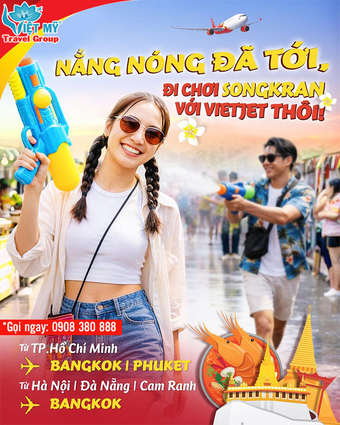 Mỗi dịp hè về, Songkran lại “khuấy động” không khí du lịch Thailand với những màn té nước sôi động, náo nhiệt khắp các con phố. Đồng hành cùng Vietjet Air, hành trình đến Bangkok hay Phuket trở nên dễ dàng hơn bao giờ hết với mức giá tiết kiệm và nhiều khung giờ bay linh hoạt.