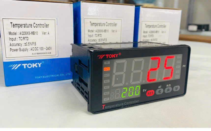 Bộ điều khiển nhiệt độ AI208X-8-MB10 kích thước 96W*48H*73L(mm) do hãng Toky sản xuất có tích hợp thuật toán PID mờ thông minh có chức năng tự động tính toán và điều chỉnh tham số đạt đến điều khiển tối ưu. Tính năng nhấn một lần để kích hoạt vào trạng thái tự động điều chỉnh, tự động tính toán trạng thái điều khiển tốt nhất.