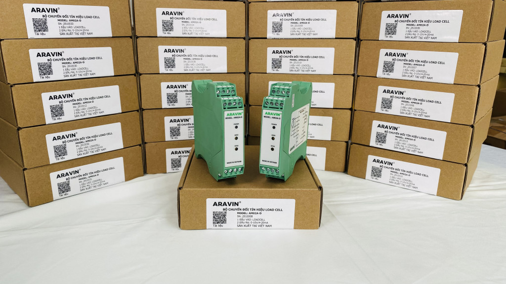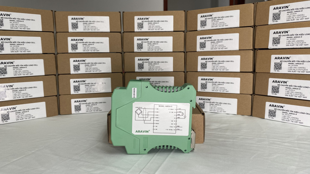 Bộ khuếch đại tín hiệu load cell cài ray AM02A-D còn gọi là bộ chuyển đổi tín hiệu loadcell do Aravin sản xuất.