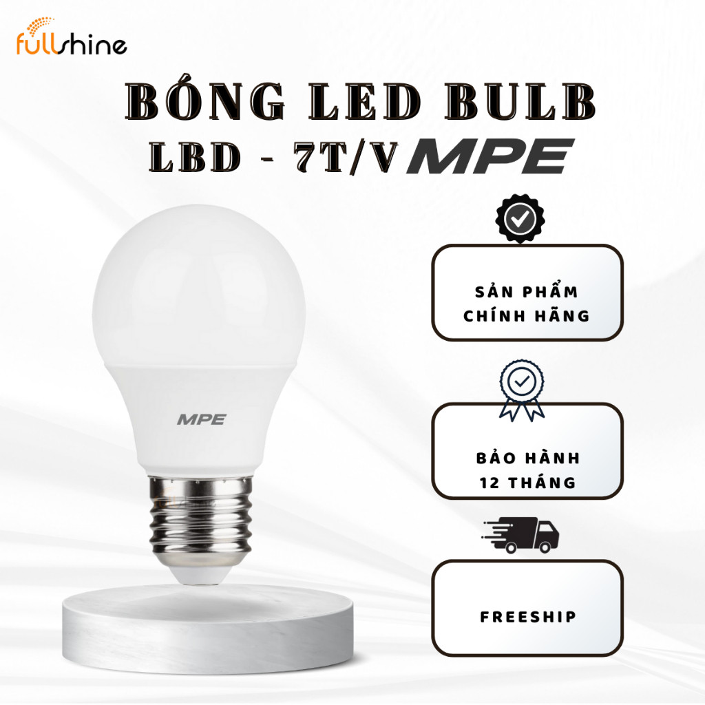 💡 Bóng Đèn LED Bulb 7W MPE – LBD7T/V, Ánh Sáng Trắng/Vàng, Chính Hãng