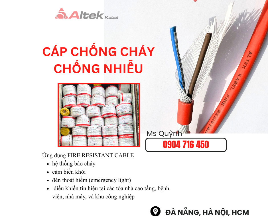 Cáp Chống Cháy,Báo Cháy 2x0.75, 2x1.0, 2x1.5, 2x2.5 Altek Kabel Hà Nội, Sài gòn, Đà Nẵng, Quảng Ninh, Hải phòng