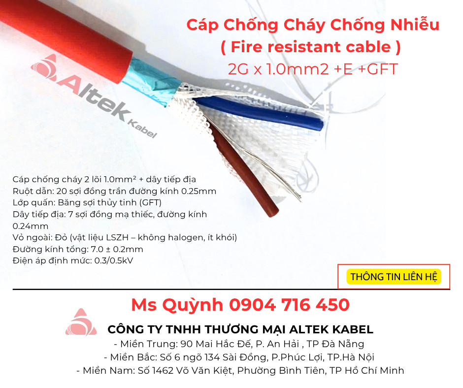 Cáp Chống Cháy Chống Nhiễu Fire resistant cable 2x1.0mm2 E GFT Altek Kabel Sài Gòn