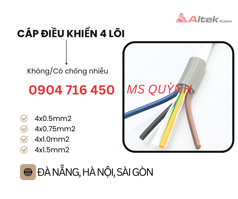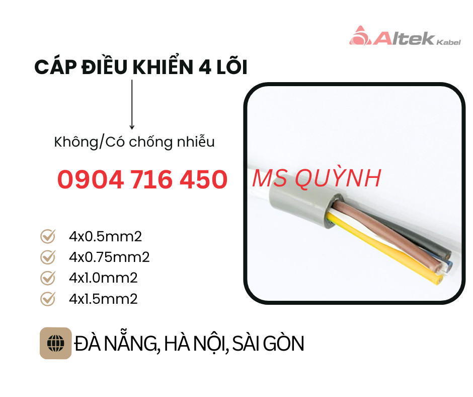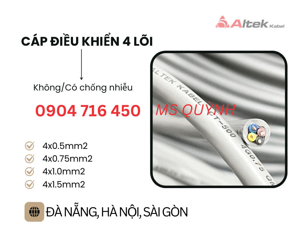 Cáp 4 core Altek Kabel 4x0.5, 4x-.75, 4x1.0,4x1.5 Đà Nẵng, Hà Nội, Hưng Yên, Hải Dương, Hải Phòng