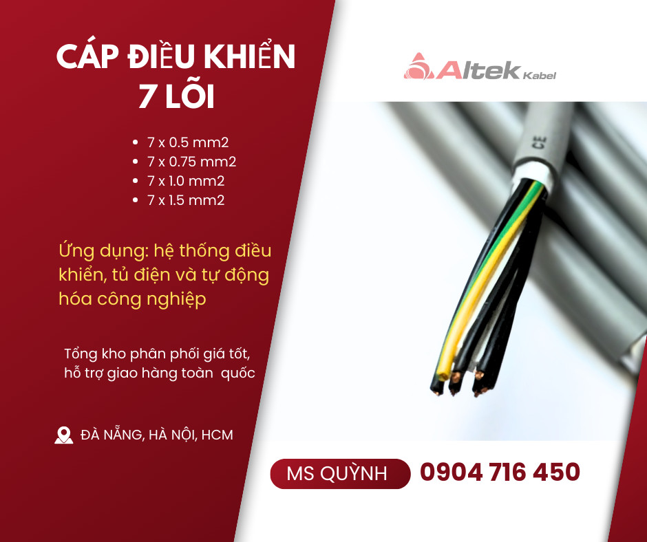 Cáp 7x0.5, 7x0.75, 7x1.0, 7x1.5 dùng cho tự động hóa, thang máy sẵn kho Đà Nẵng, Hà Nội