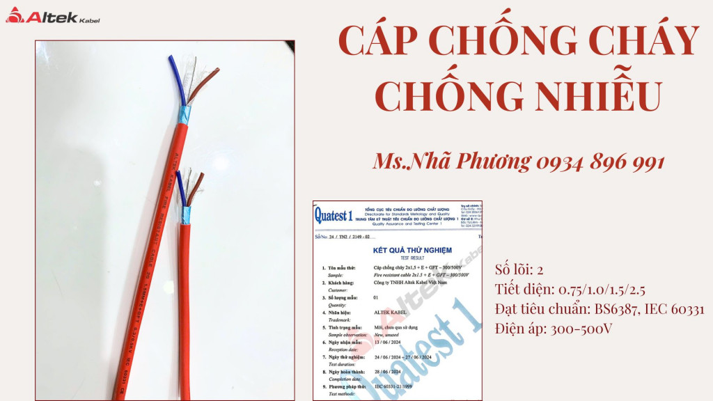 Quý vị đang xem nội dung tin rao "Cáp Chống Cháy Chống Nhiễu 2x1.0 mm2 Altek Kabel Chuẩn BS6387, IEC 60331" -