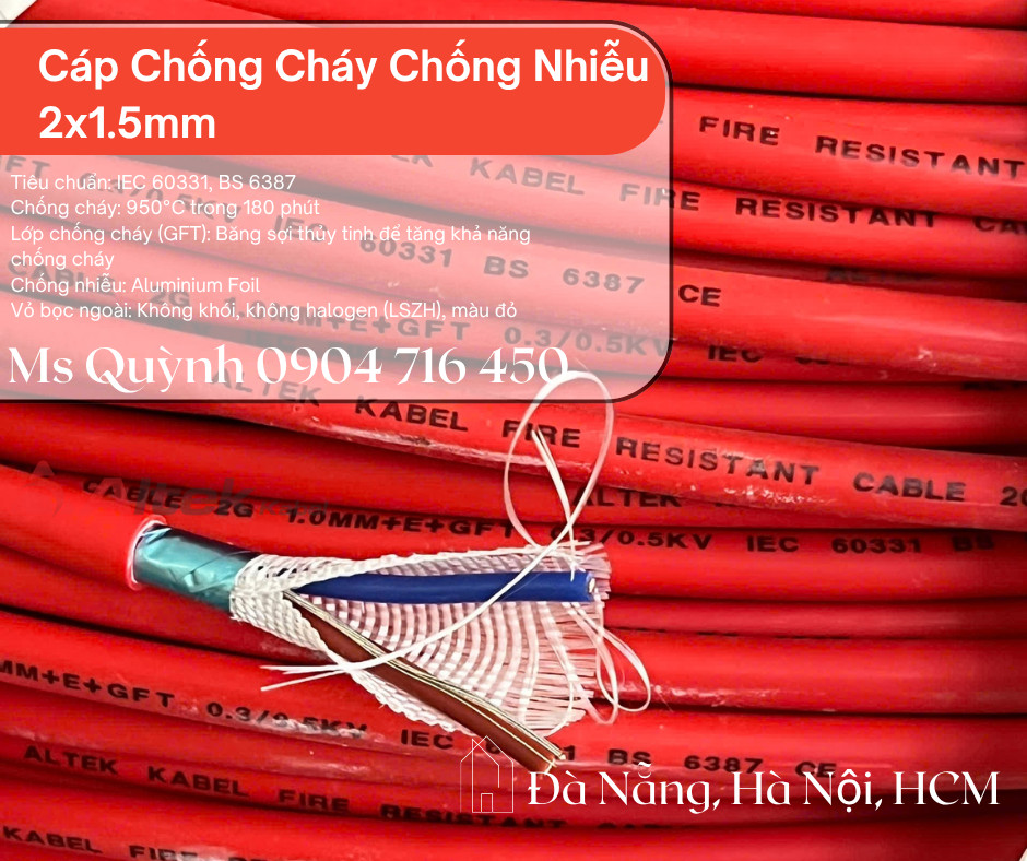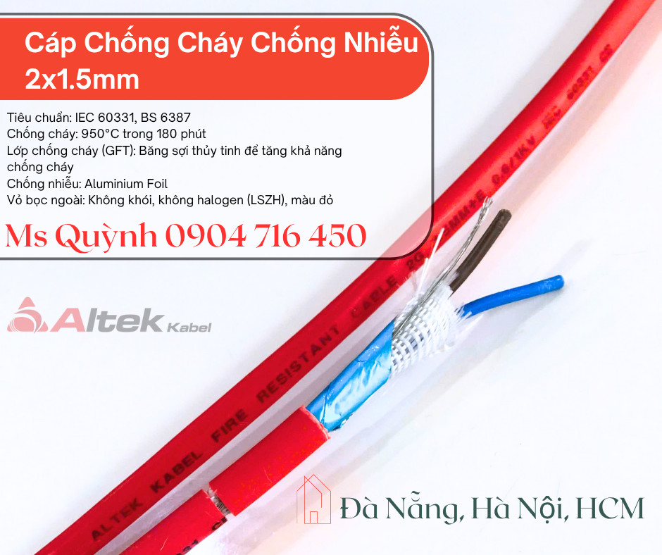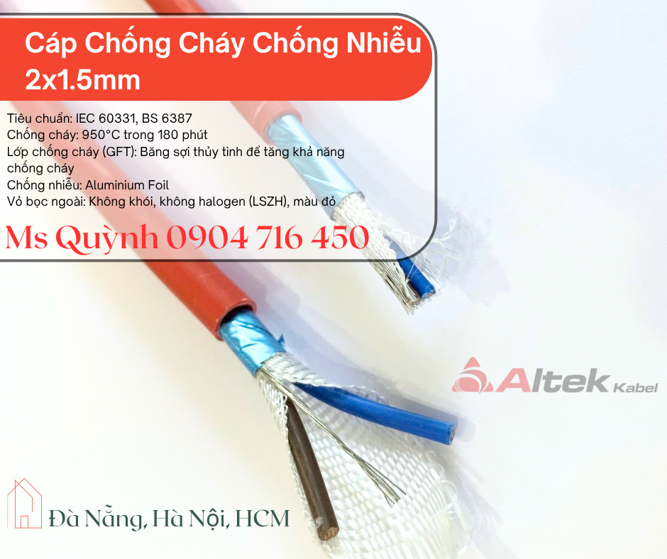 Cáp chống cháy chống nhiễu 2x1.5 Altek Kabel 750 độ Đà Nẵng, Quảng Ngãi, Hà Nội