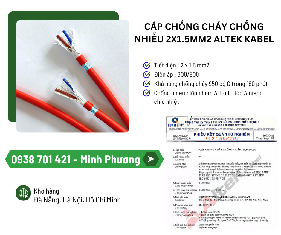 Cáp chống cháy chống nhiễu 2x1.5mm2: Báo giá & ứng dụng mới nhất 2026