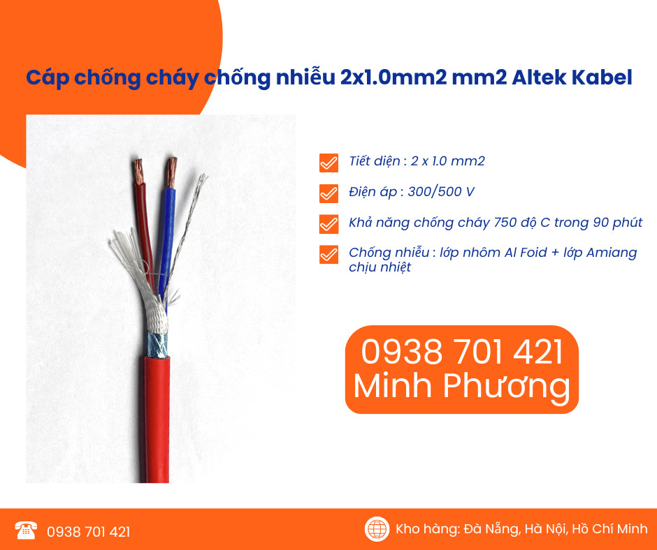 Cáp chống cháy chống nhiễu Altek Kabel 2x1.0 mm2 chính hãng Đà Nẵng, Huế, Bình Định