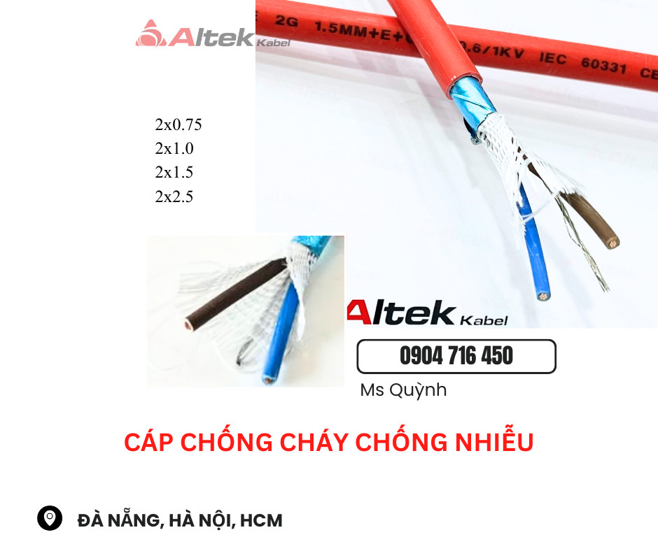 Cáp Chống Cháy Chống Nhiễu 2x0.75, 2x1.0, 2x1.5, 2x2.5 Altek Kabel