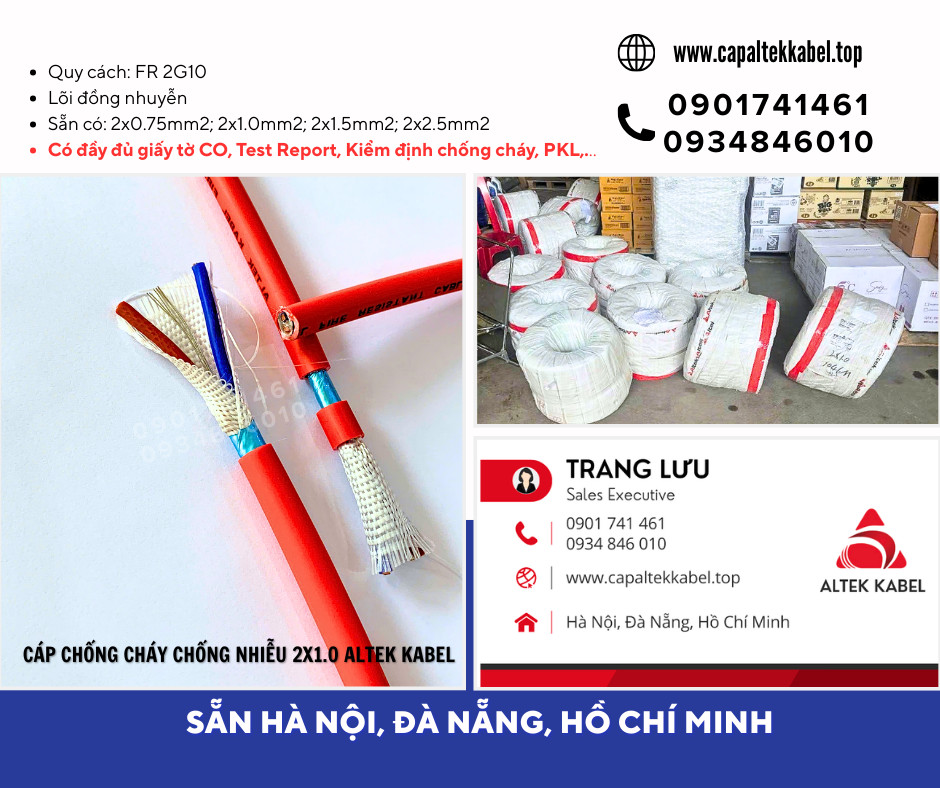 Cáp điện chống cháy chống nhiễu 2x1.0 sẵn Đà Nẵng, Bình Định, Phú Yên, Khánh Hòa