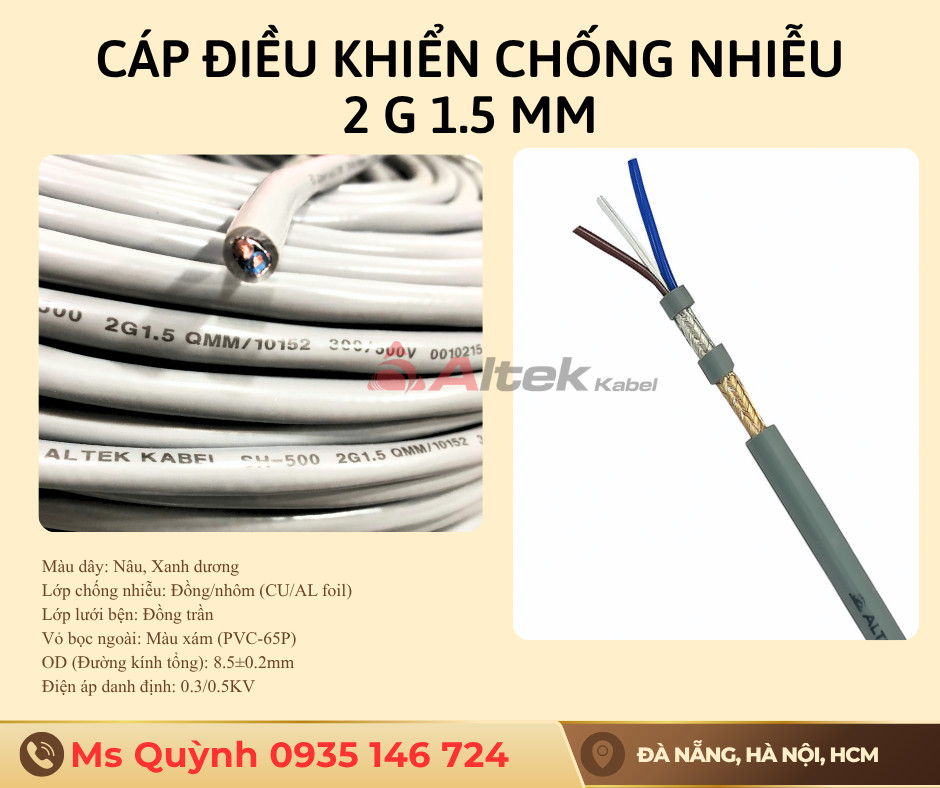 Cáp điều khiển 2x1.5 mm2 tín hiệu Altek Kabel Hà Nội, Đà Nẵng, Sài Gòn