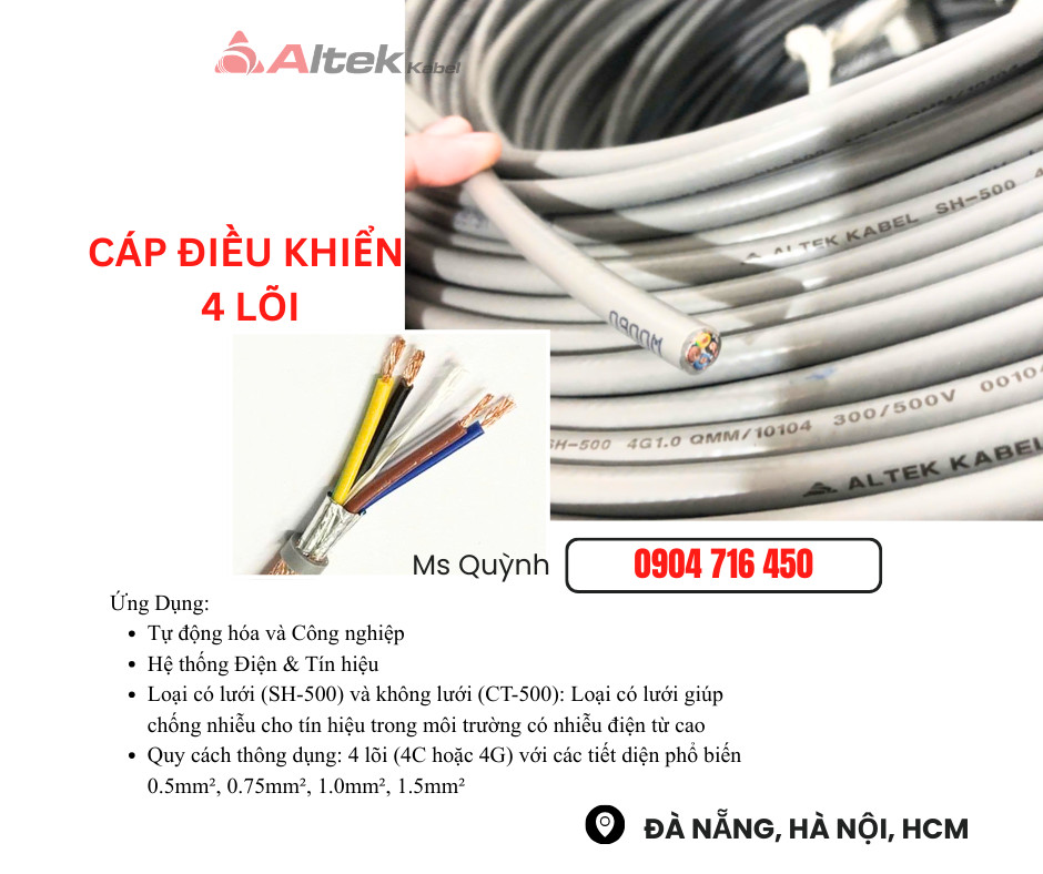 Cáp điều khiển 4c 4 lõi Altek Kabel Đà Nẵng, Hà Nội