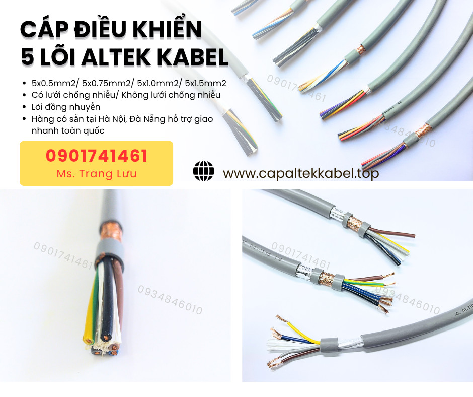 Cáp điều khiển 5 lõi Altek Kabel là dòng dây tín hiệu chuyên dụng cho hệ thống tự động hóa, dây chuyền sản xuất, tủ điện điều khiển, cảm biến, camera và thiết bị PLC.