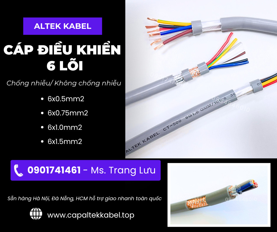Cáp điều khiển 6 lõi Altek Kabel là dòng dây tín hiệu chuyên dụng cho hệ thống tự động hóa, dây chuyền sản xuất, tủ điện điều khiển, cảm biến, camera và thiết bị PLC.
