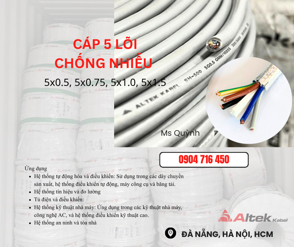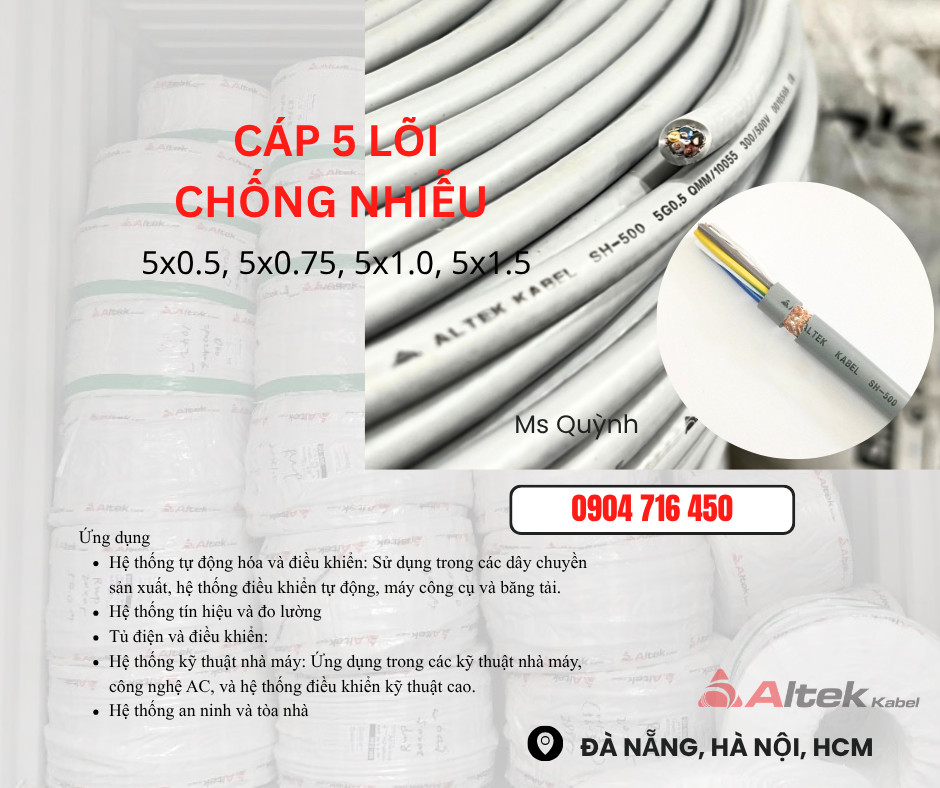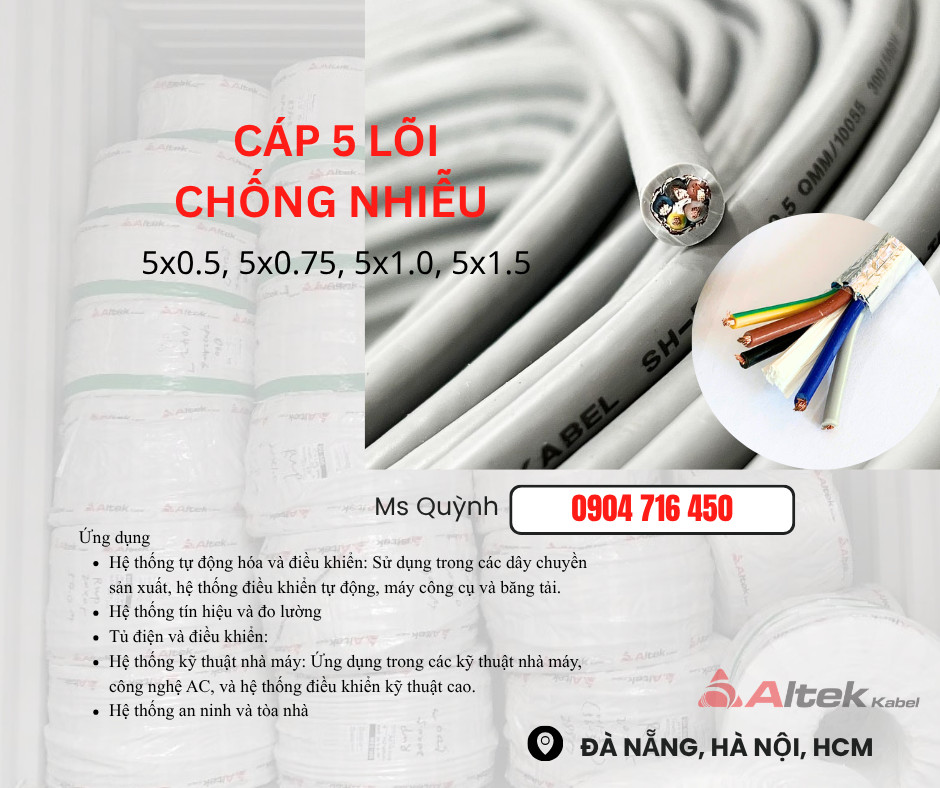 Cáp điều khiển Altek Kabel 5x0.5,5x0.75,5x1.0,5x1.5 DVV Hà Nội, Đà Nẵng, Quảng Nam, Quảng Bình, Quảng Trị, Quảng Ninh