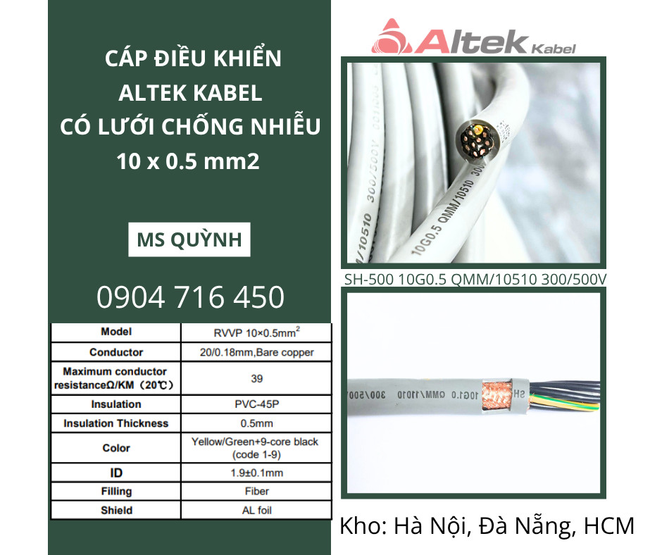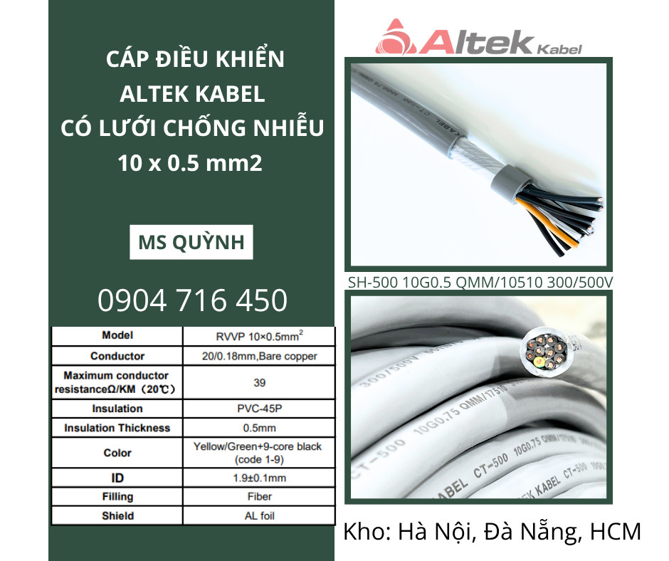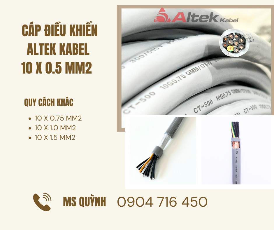 Cáp điều khiển chống nhiễu 10x0.5, 10x0.75, 10x1.5 Altek Kabel Hà Nội, Hải Dương