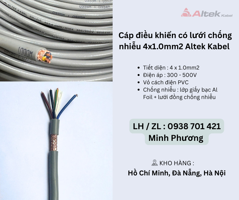 Cáp điều khiển có lưới chống nhiễu 4x1.0mm2 Altek Kabel Hà Nội, Đà Nẵng, Huế