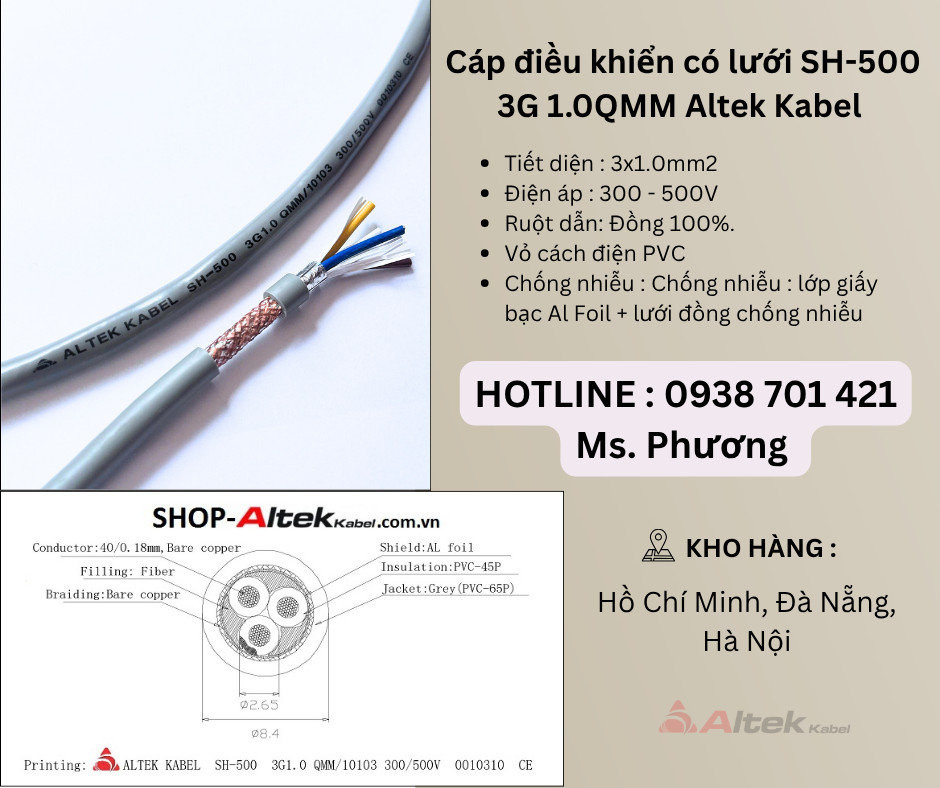 Cáp điều khiển có lưới SH-500 3G 1.0QMM Altek Kabel Đà Nẵng, Hà Nội, Hồ Chí Minh