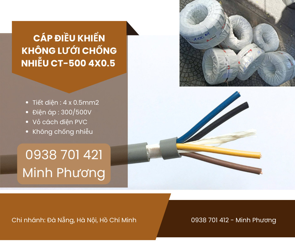 Cáp điều khiển không lưới chống nhiễu CT-500 4x0.5 Huế, Quảng Nam, Khánh Hòa