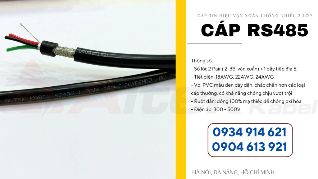 Cáp điều khiển RS485 chống nhiễu vặn xoắn 2 pair 22AWG Altek Kabel