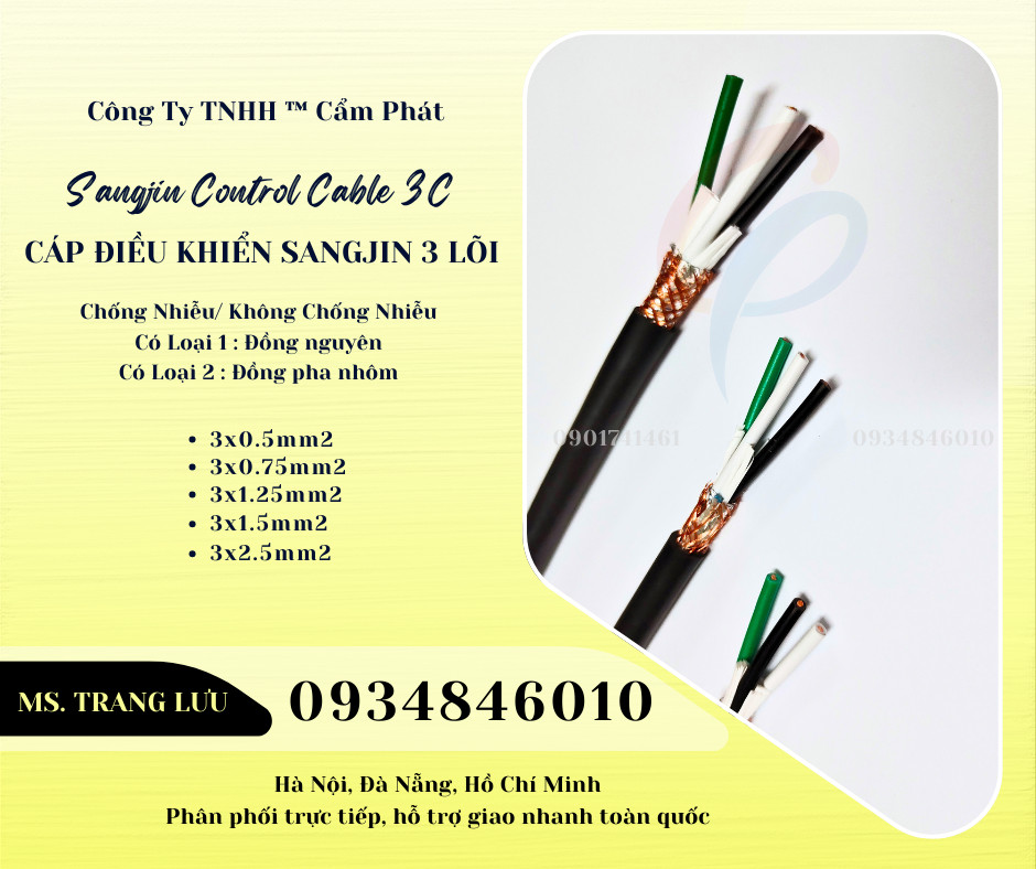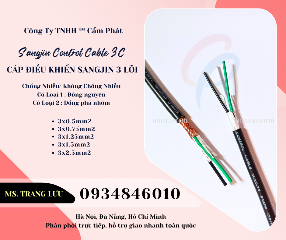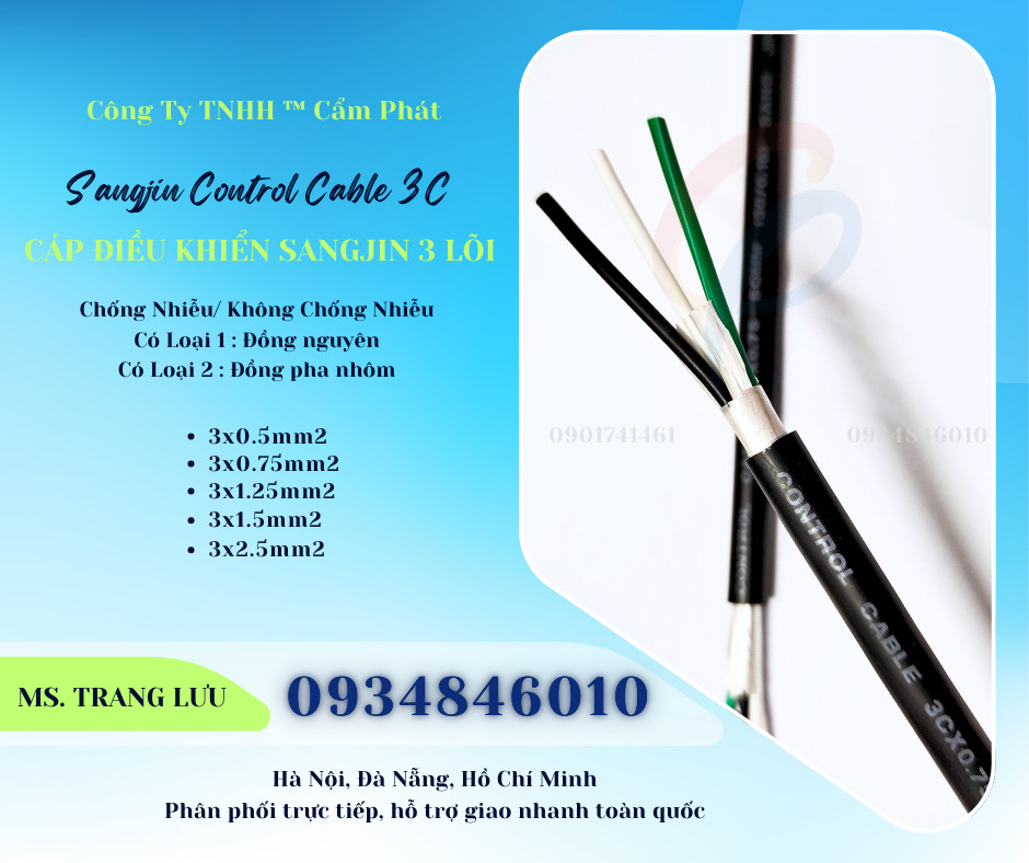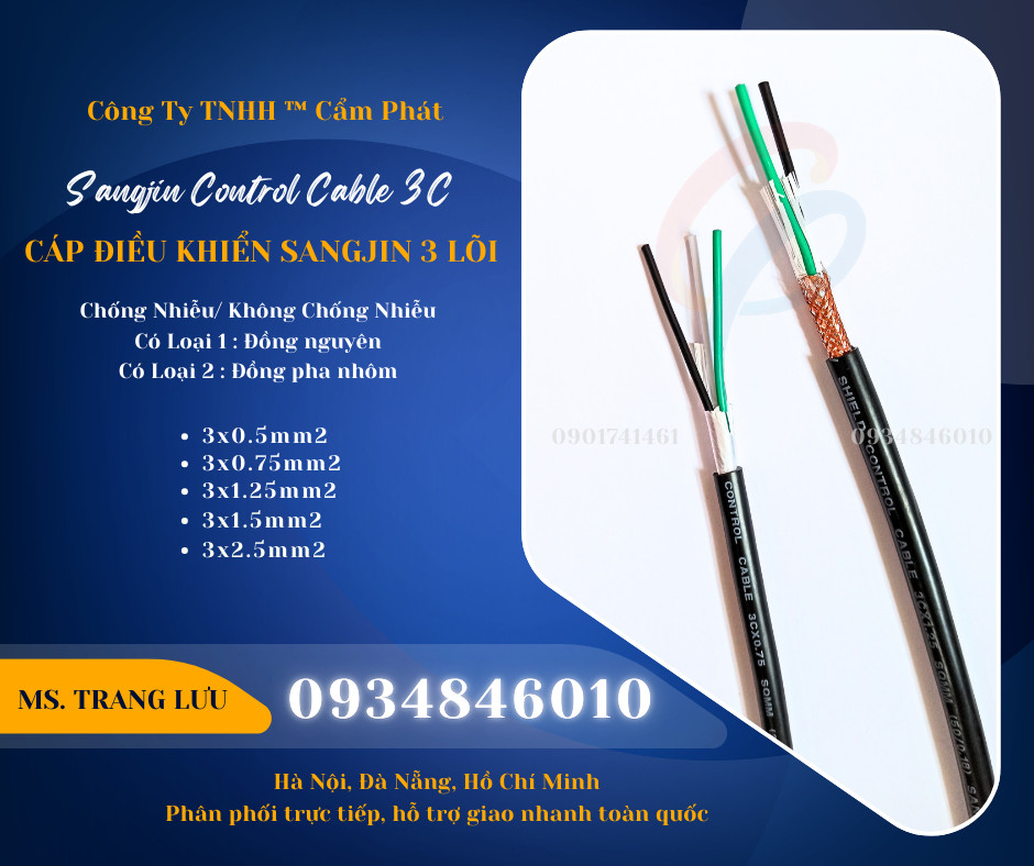 Cáp điều khiển Sangjin 3x0.5/2x0.75/3x1.25/3x1.5/3x2.5 sẵn HCM