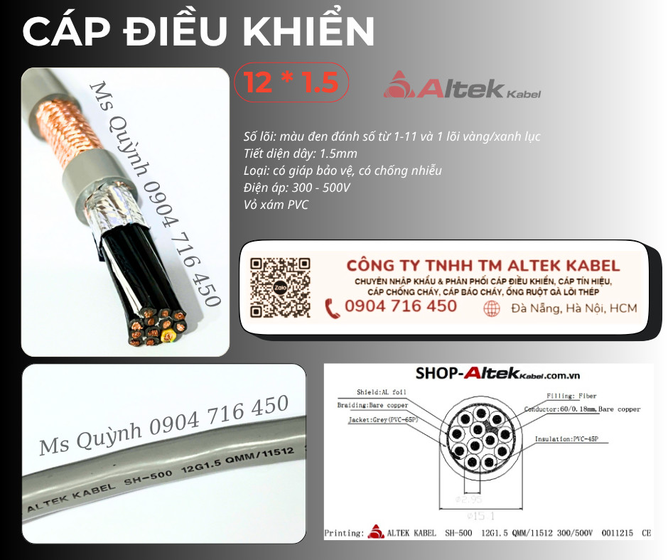 Cáp điều khiển shield Altek Kabel 12x1.5mm2 Đà Nẵng