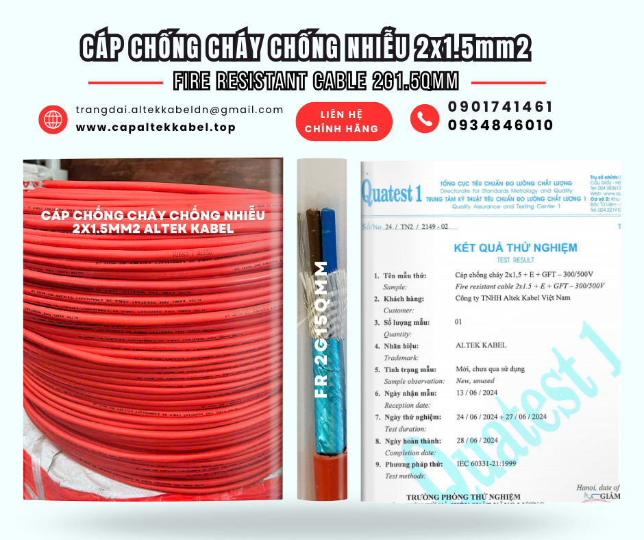 Cáp FR 2x1.5 chống cháy chống nhiễu Altek Kabel Đà Nẵng, Hà Nội