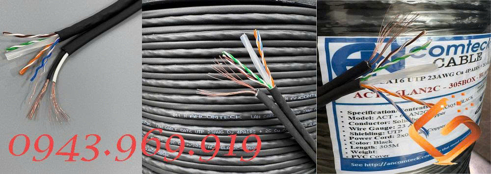 Cáp mạng liền nguồn Cat6 UTP + 2C lõi đồng liền nguồn ANCOMTECK
