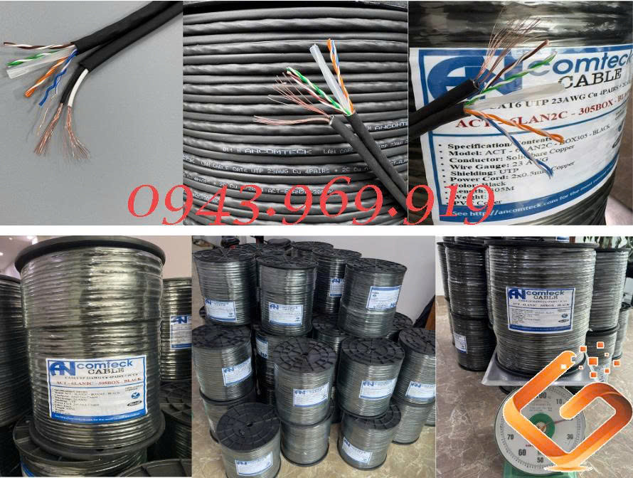 💖 Cáp mạng liền nguồn Cat6 UTP + 2C lõi đồng liền nguồn ANCOMTECK mã ACT-6LAN2C-305BK 💖