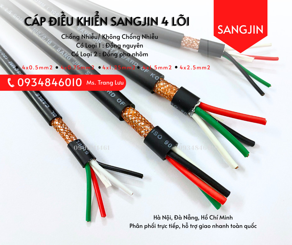 Cáp RVVP/ CXV 4x0.5/4x0.75/4x1.25/4x1.5/4x2.5 sẵn HCM