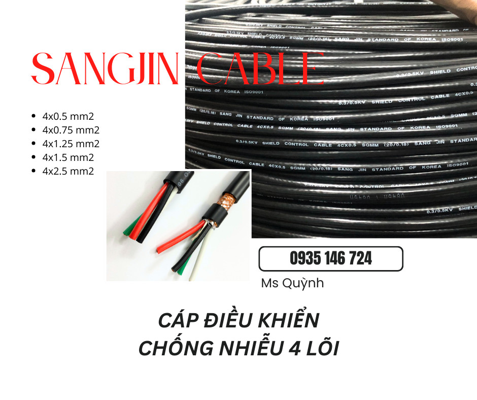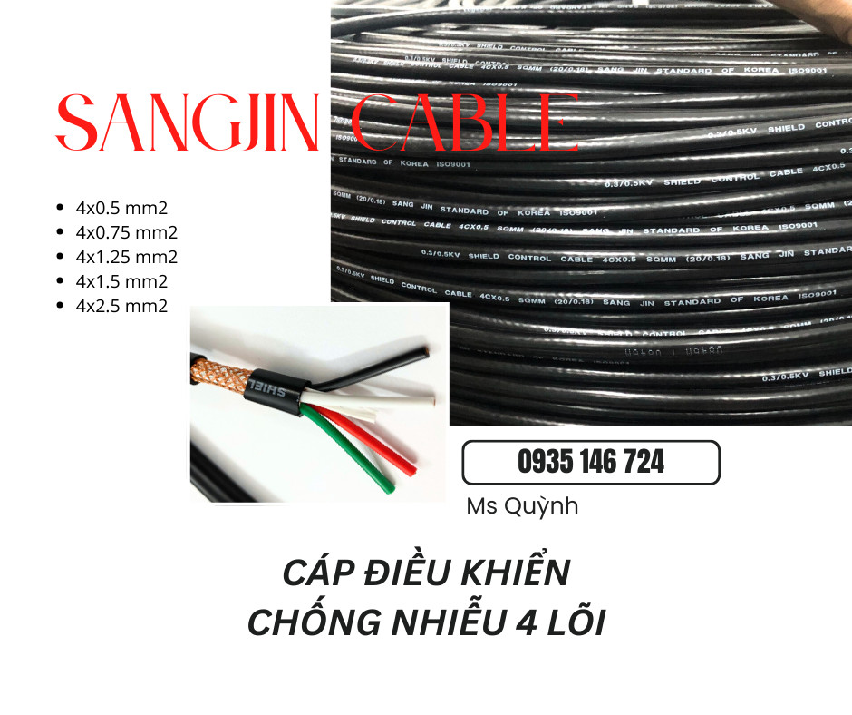 Cáp điều khiển 4 lõi chống nhiễu Sangjin