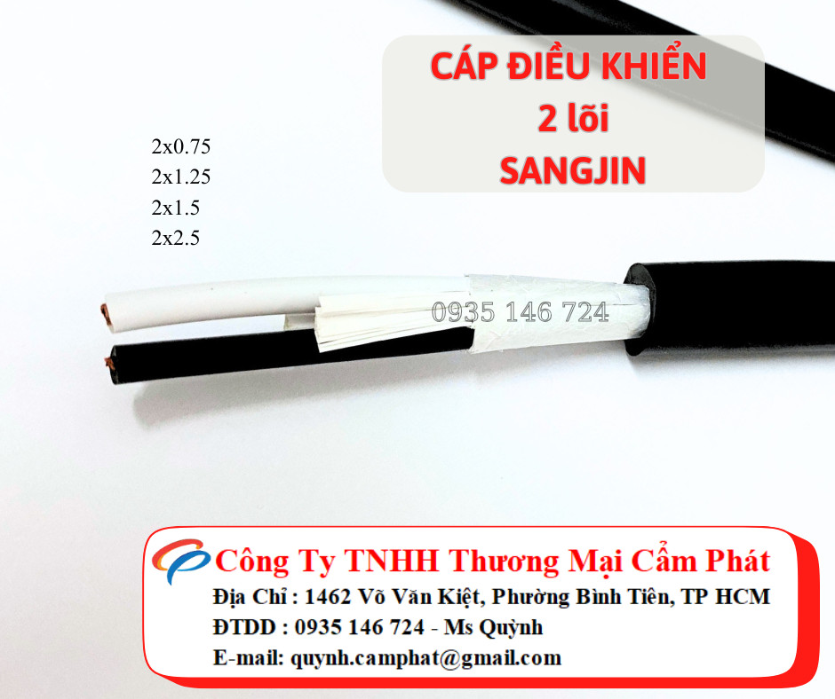 Cáp sangjing 2x0.5, 2x0.75, 2x1.25, 2x1.5, 2x2.5 Sài Gòn, Bình Dương, Đồng Nai