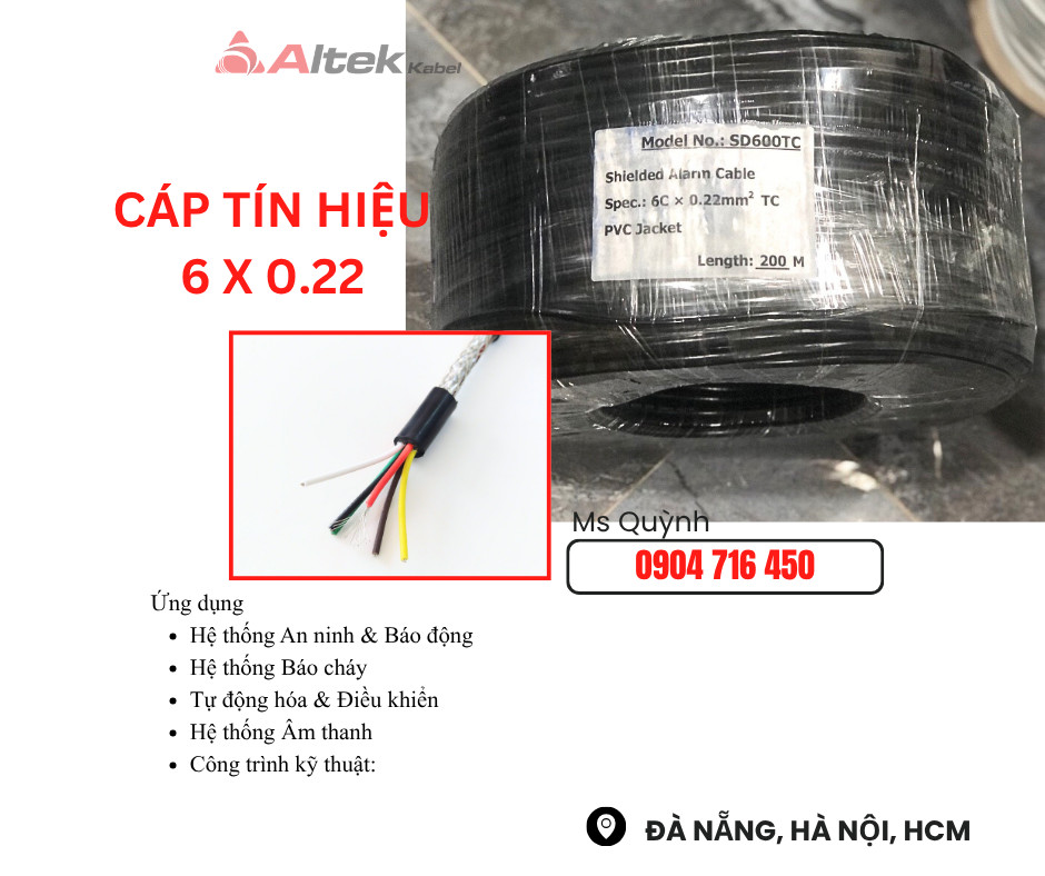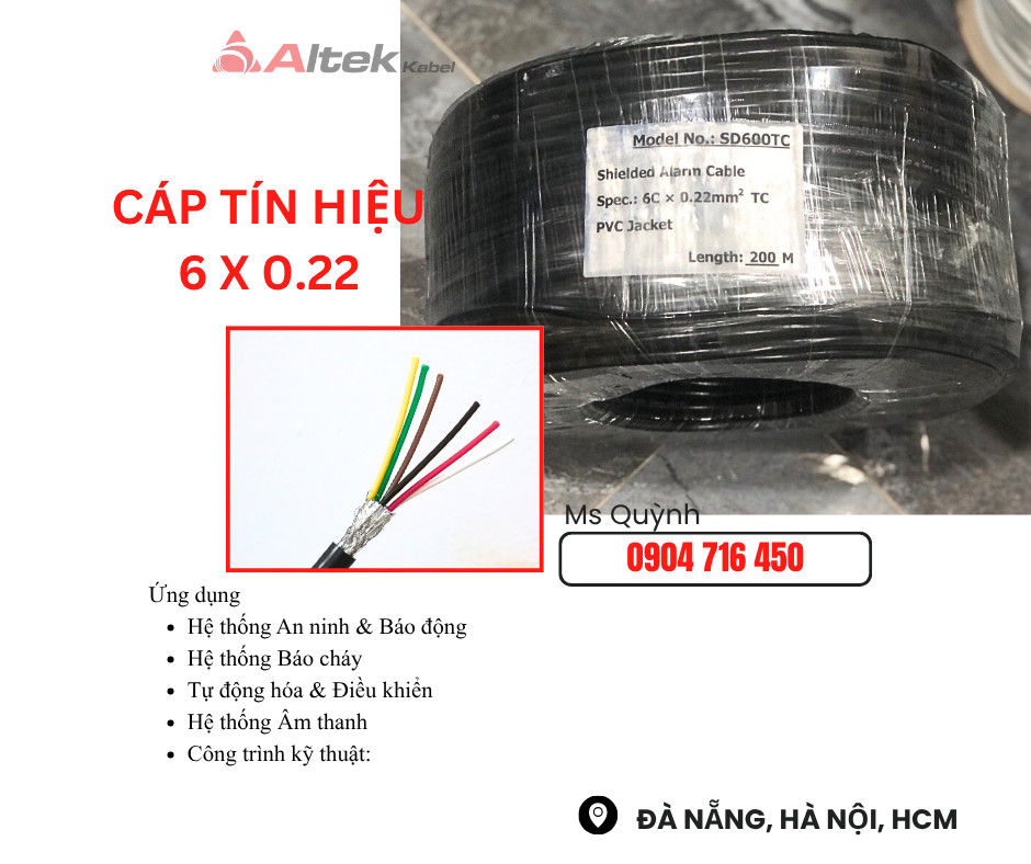 Cáp tín hiệu âm thanh 6x0.22 RVVP Altek Kabel Đà Nẵng, Hà Nội, Sài Gòn, Quảng Ngãi, Quy Nhơn, Long An, Tiền Giang