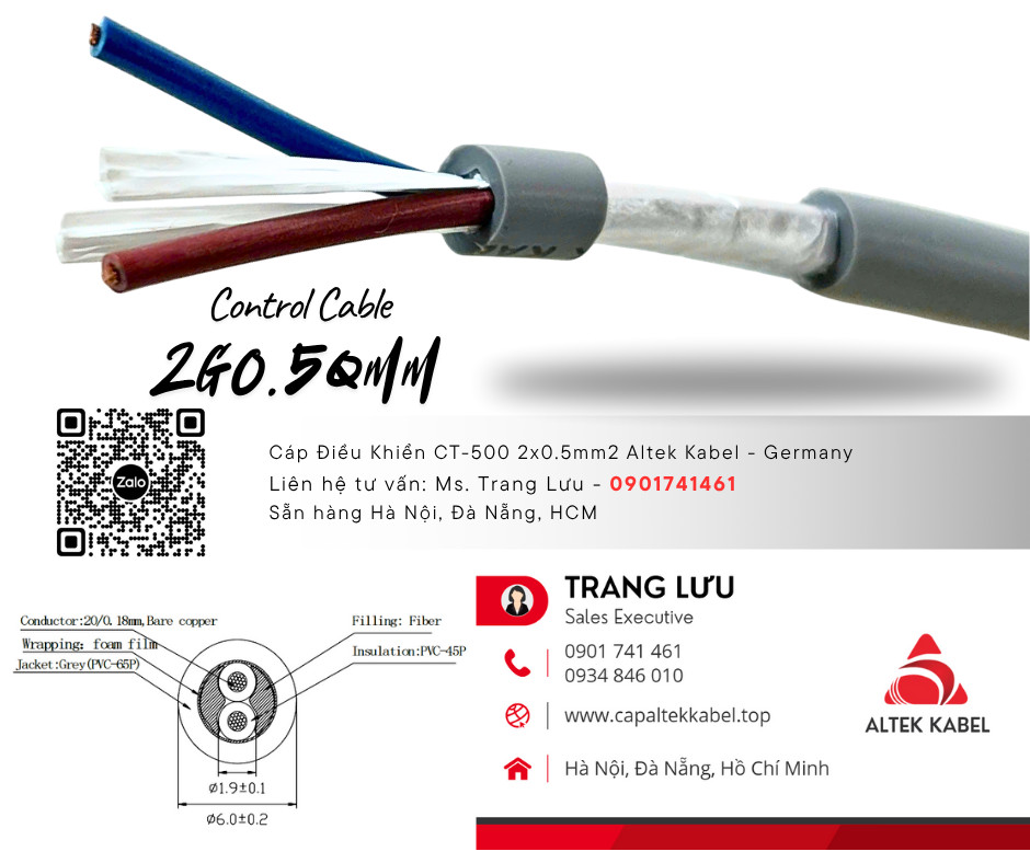 Cáp điều khiển 2x0.5mm2 Altek Kabel là dòng cáp cao cấp được nhập khẩu và sản xuất theo tiêu chuẩn Đức, chuyên dùng cho tủ điện, máy móc, hệ thống tự động hóa.