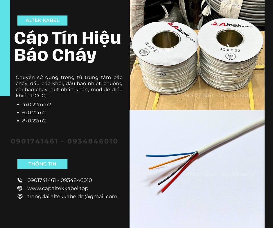 Cáp tín hiệu báo cháy Altek Kabel là loại cáp truyền tín hiệu chuyên dùng cho trung tâm báo cháy, đầu báo khói, đầu báo nhiệt, chuông còi, nút nhấn khẩn, module điều khiển PCCC. Cáp cho khả năng truyền tín hiệu ổn định, dễ thi công và phù hợp nhiều công trình dân dụng – công nghiệp.