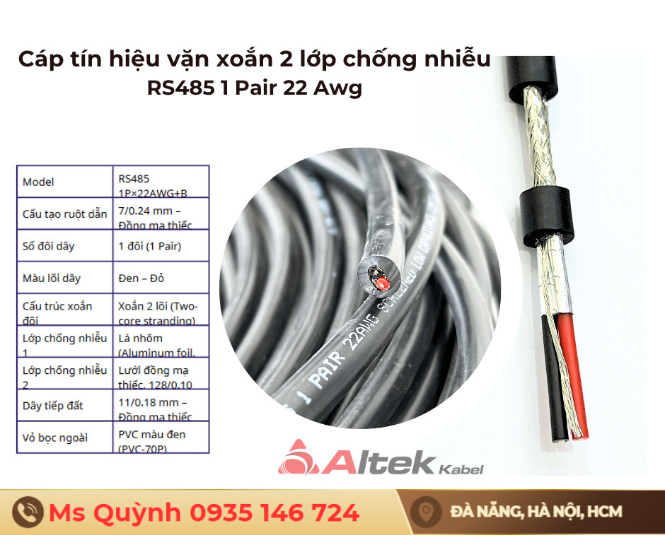 Cáp tín hiệu RS485 24AWG 1 Pair Altek Kabel Hà Nội, Đà Nẵng, HCM