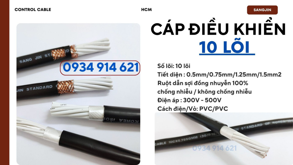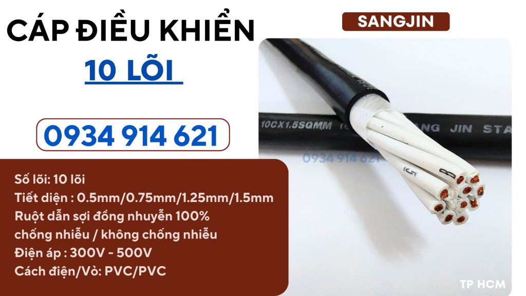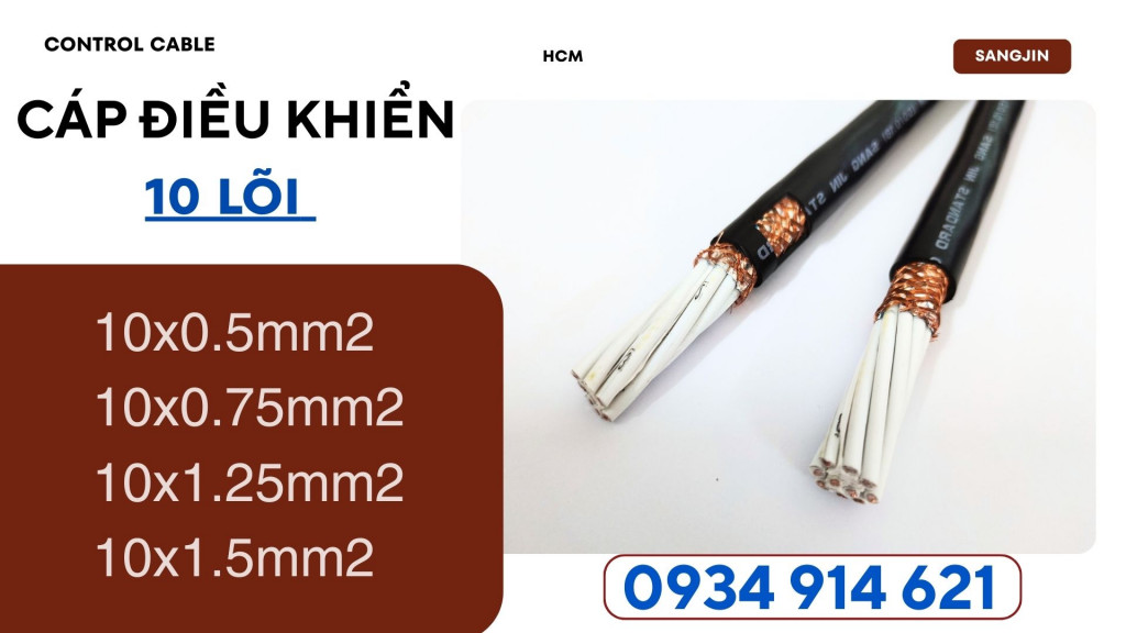 Cáp điều khiển 10 lõi Sangjin – Chất lượng cao, truyền tín hiệu ổn định