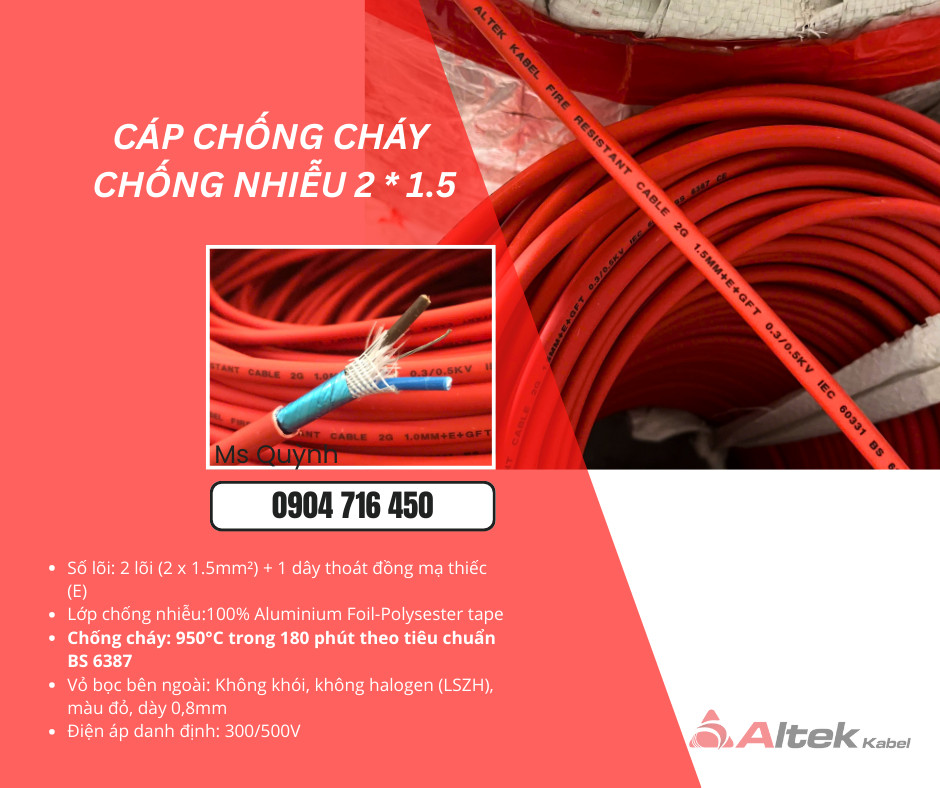 Cáp Chống Cháy Chống Nhiễu 2x1.5mm2 Altek Kabel