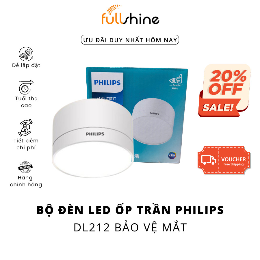 Đèn led ốp trần ống bơ downlight ốp nổi 5W DL212 Philips bảo vệ mắt màu trắng màu đen