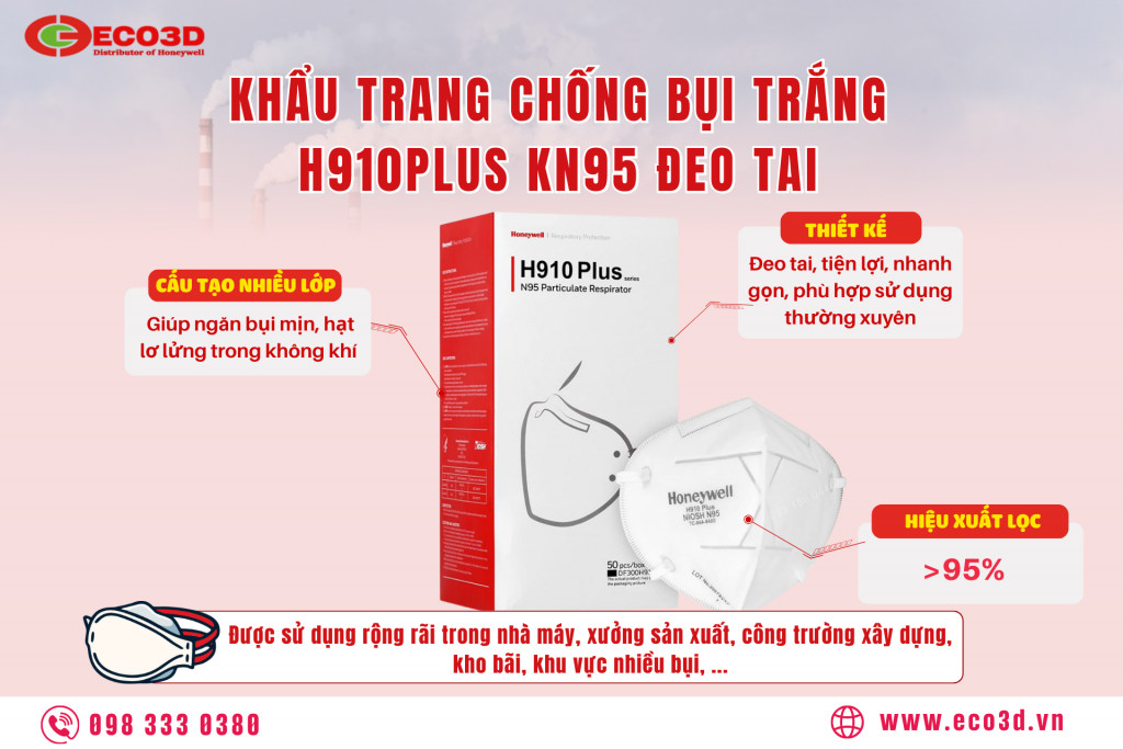 😷 Khẩu trang chống bụi trắng H910PLUS KN95 đeo tai