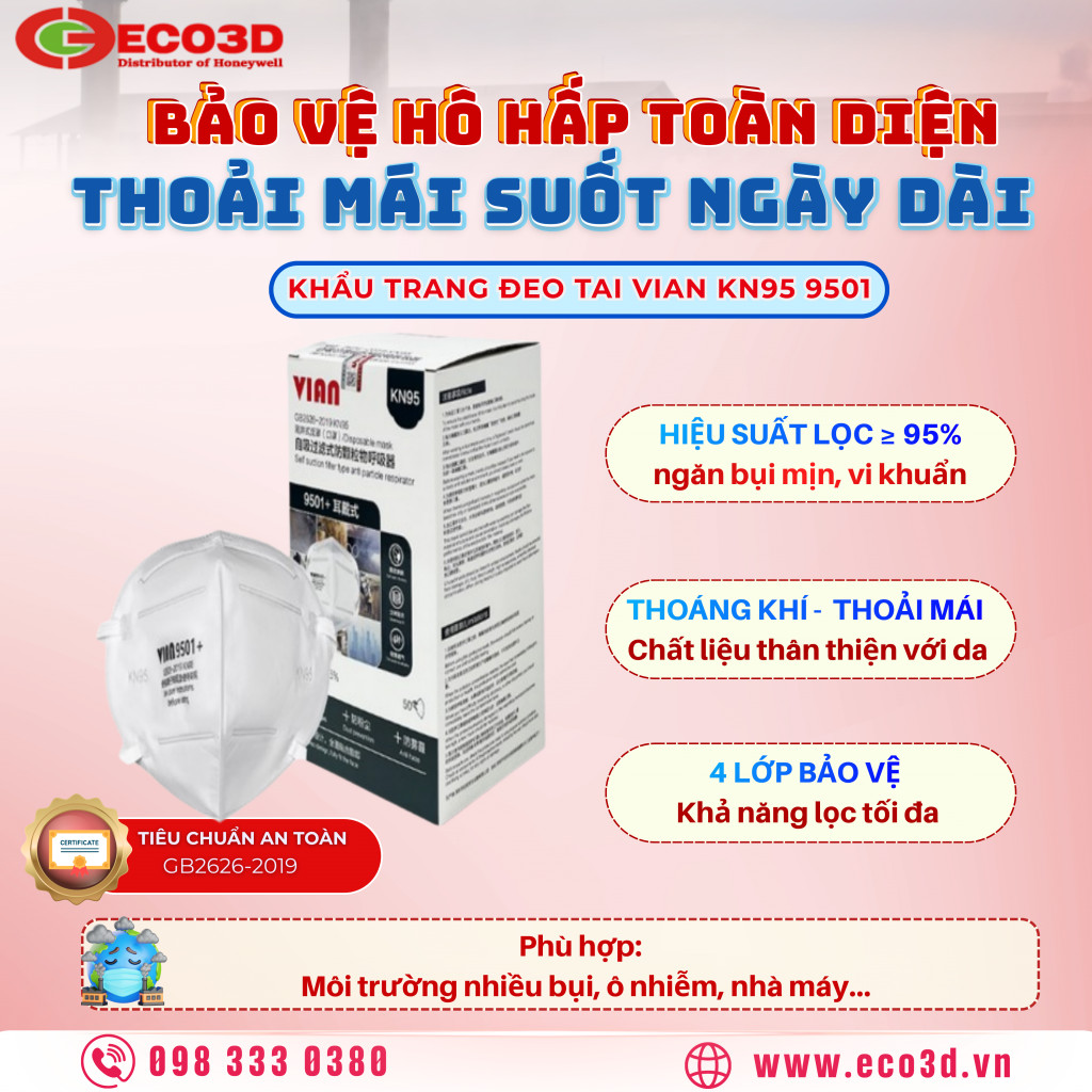 Khẩu trang đeo tai VIAN KN95 9501 – Bảo vệ hô hấp toàn diện, thoáng khí và thoải mái suốt ngày dài