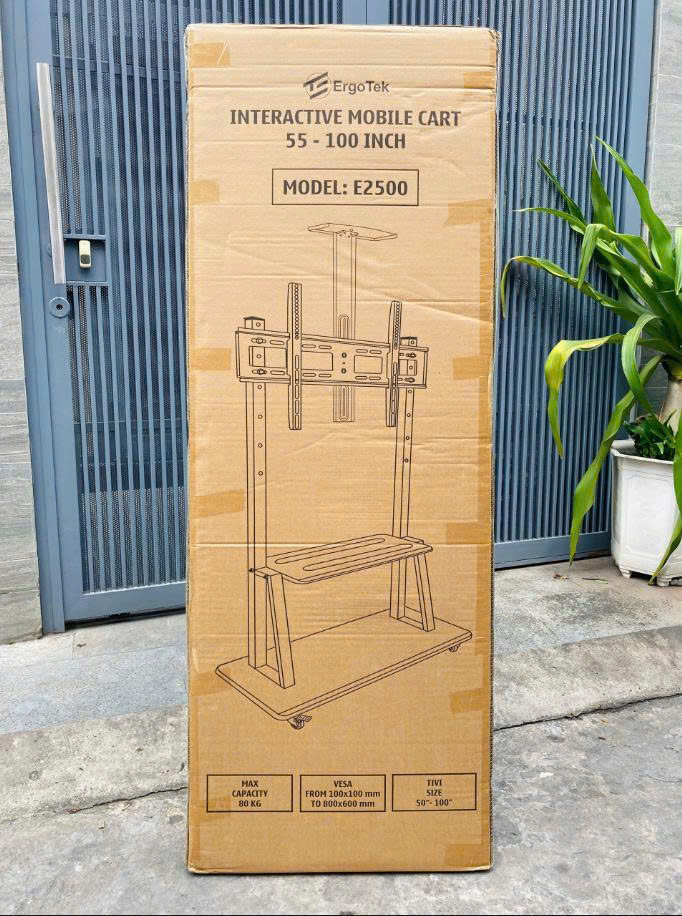 Khung treo tivi di động E2500 (hay TK100) được thiết kế chuyên dụng cho tivi kích thước lớn từ 60”–100”, kết cấu chắc chắn, chịu tải cao, phù hợp cho phòng họp, hội trường, trường học và triển lãm.