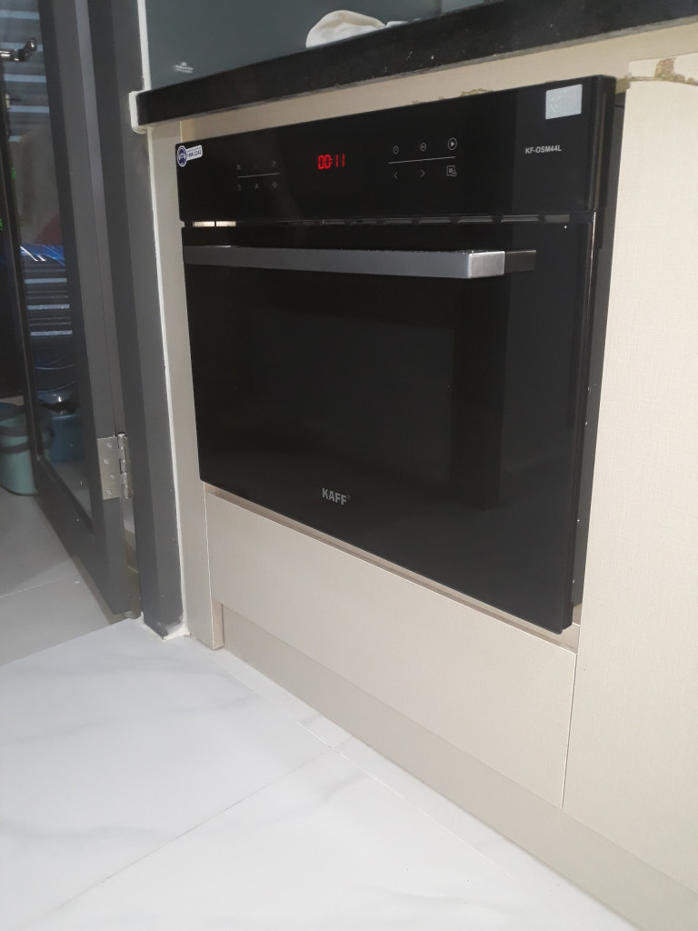 Kiểu dáng âm tủ hiện đại, mặt kính đen toàn phần, cửa lò kín và có hệ thống thông gió giúp an toàn hơn và dễ vệ sinh sau mỗi lần sử dụng. Dung tích 44L lý tưởng cho gia đình nhiều thành viên hoặc các không gian bếp cao cấp.
