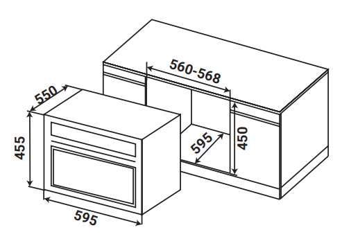 📐 Kích thước âm tủ: 450C × 560–568R × 595S mm