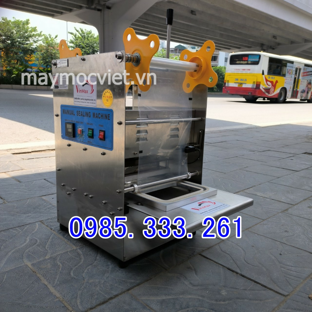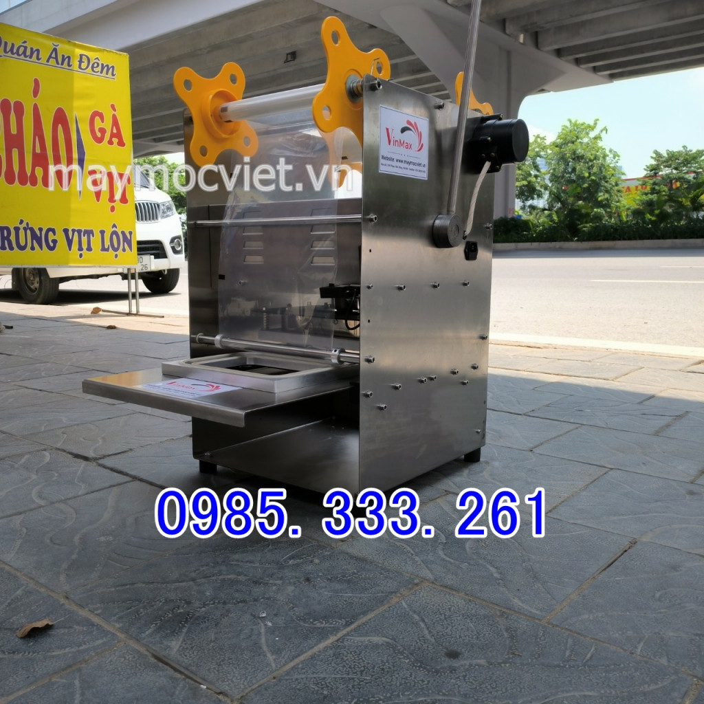 Máy dán hộp vuông thực phẩm có màng dán chắc chắn, không hở, không làm đổ nguyên liệu ra ngoài. Máy có kích thước nhỏ gọn phù hợp cho các hộ kinh doanh vừa và nhỏ, máy dễ dàng vệ sinh. Máy chỉ cần dùng thao tác nhấn sẽ giúp nắp hộp tự động ép và dính chặt vào miệng hộp. Nhằm đảm bảo không cho nguyên liệu bên trong cốc bị đổ ra ngoài.