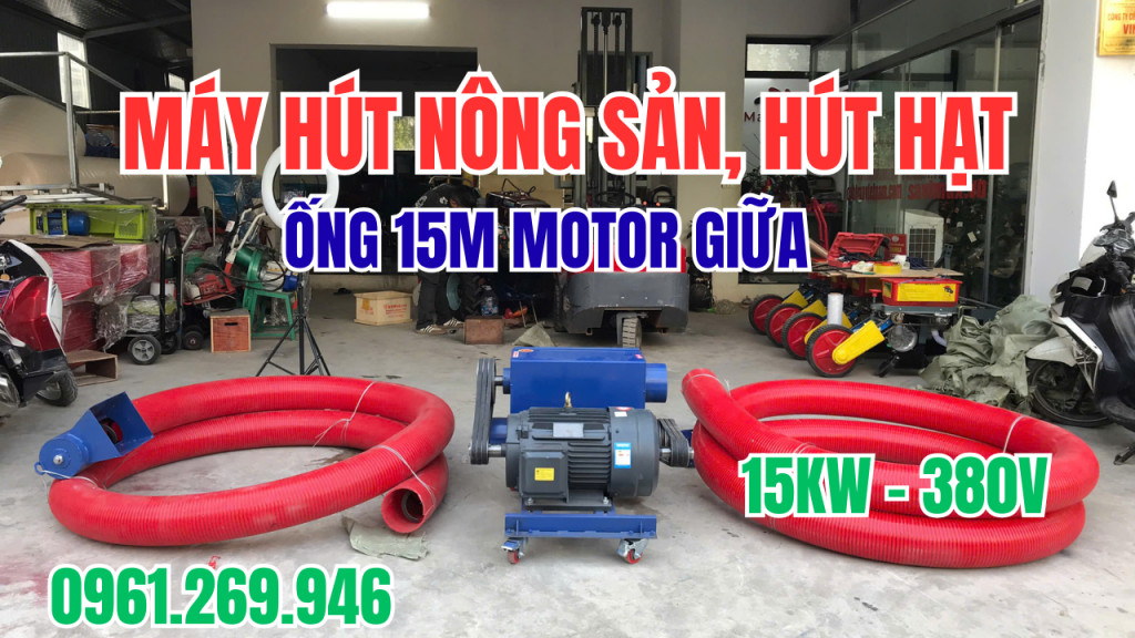 Sản phẩm sử dụng động cơ điện 3 pha công suất 15kW, cho lực hút khỏe, hoạt động ổn định, đáp ứng tốt nhu cầu sản xuất quy mô vừa và lớn, đặc biệt phù hợp với cơ sở thu mua nông sản, lò sấy, nhà máy chế biến, hợp tác xã.