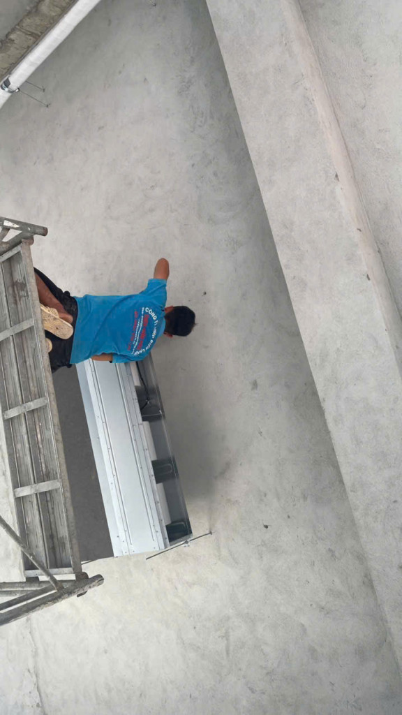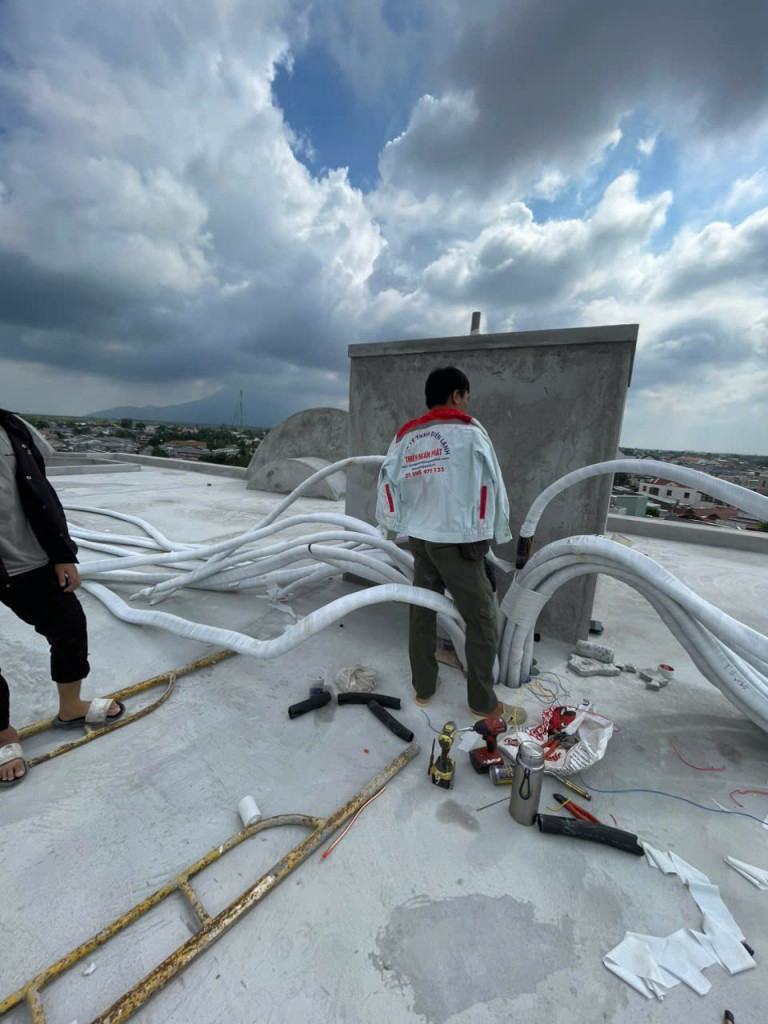 Thực hiện việc gắn ống gió trên la phong bởi kỹ thuật viên Thiên Ngân Phát