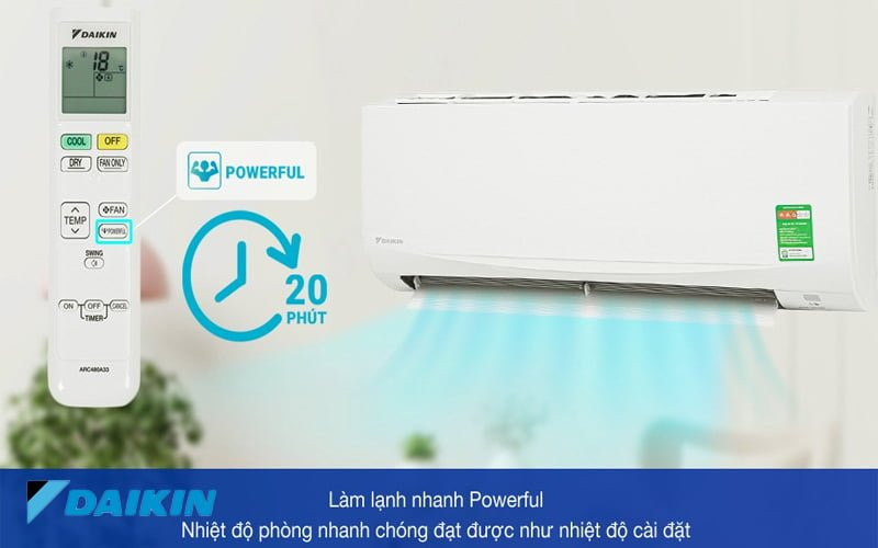 Chế độ Powerful cho phép máy hoạt động với công suất tối đa ngay khi bật, tăng tốc độ quạt để làm lạnh nhanh chóng. Người dùng không cần chờ đợi lâu để đạt nhiệt độ mong muốn, giúp không gian trở nên mát mẻ ngay lập tức – hoàn hảo khi bạn vừa về nhà hoặc khi có đông người trong phòng.