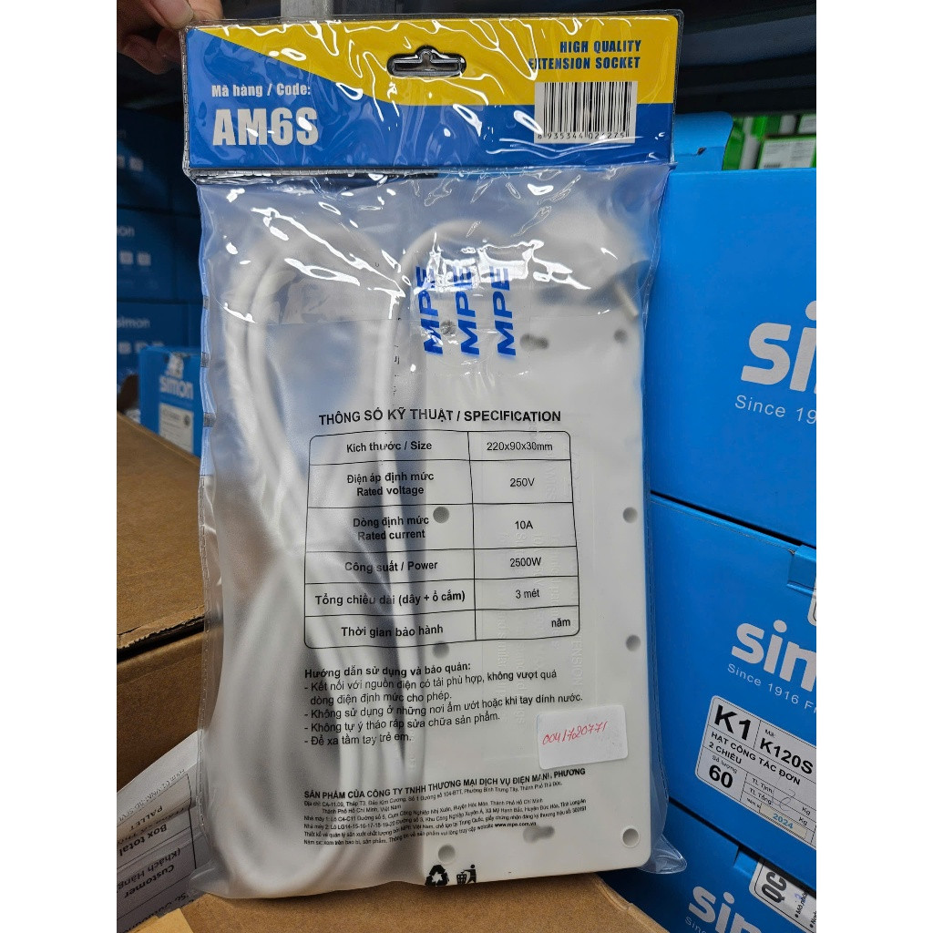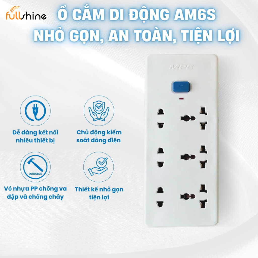 Ổ cắm di động MPE AM6S 3 ổ cắm đa năng 3 ổ cắm 2 chấu